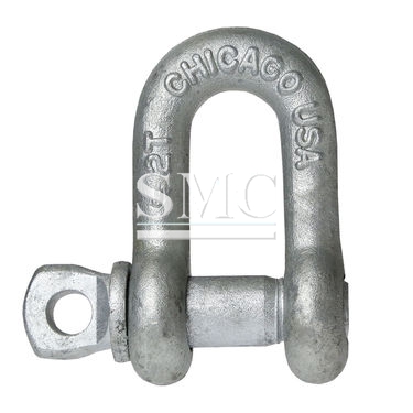 Chain shackles are also known as D-shackles. Both refer to the “D” shape design. A d-shackle is narrower than a bow or anchor shackle and generally have a threaded pin or pin close. The smaller loop is designed to take high loads primarily in line. Side and racking loads may twist or bend a D or chain shackle.