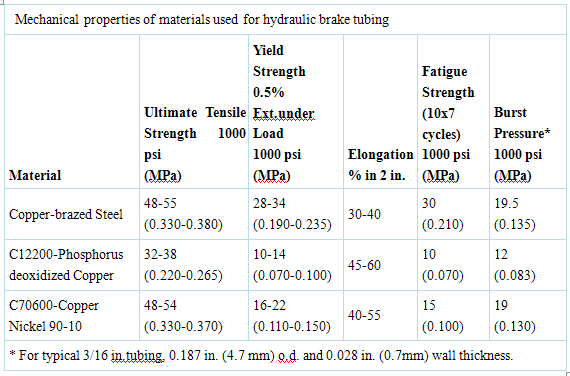 Prior to 1930, copper and brass, having excellent inherent pressure containing and anti-corrosion characteristics, were the materials of choice for brake tubing. By post World War II,