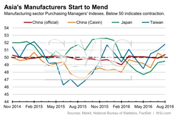 Statistics gathered by (Markit, 2016), (National Bureau of Statistics, 2016) and (FactSet, 2016) have suggested that manufacturing in Japan, Taiwan, China and South Korea is showing signs of progression.