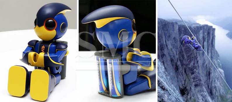 Evolta Neo is a small robot powered by two AA dry cell batteries that has succeeded in climbing to the top of a sheer cliff in Lysefjord, Norway, for no less than 1000 meters in 11.5 hours on July 8. The humanoid bot ascended along a tight rope and reached the top on its second attempt, as the first time it was hindered by rain and wind.