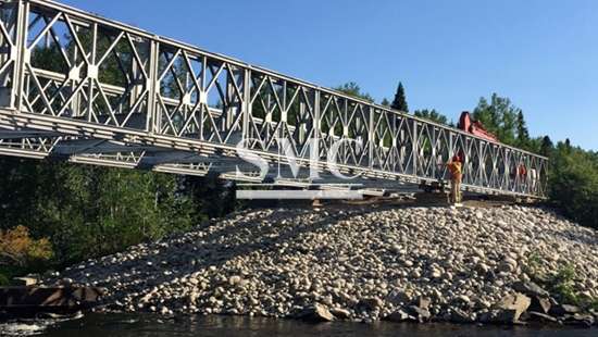 Compact panel bridges, or bailey bridges, are a type of portable, pre-fabricated, truss bridge. They are known for their convienent transport, speedy erection, and easy disassembly. Because of this they are adopted extensively and one of the most popular bridges in the world. Compact panel bridges are light-weight and made of high tinsel strength steel. This gives them great stability in addition to a heavy load capacity. They are known for their long lasting fatigue life as well. Compact panel bridges are capable of altering their span in order work in a variety of settings. Compact panel bridges work well as temporary bridges, emergency bridges, and fixed bridges. Here at Shanghai Metal Corporation (SMC), we have the highest national qualifications to assure quality and safety in our compact panel bridges. Our compact panel bridge was co-developed in a lab in partnership with a university. We also have have 3,000 employings working to ensure an on time delivery and customer satisfaction.