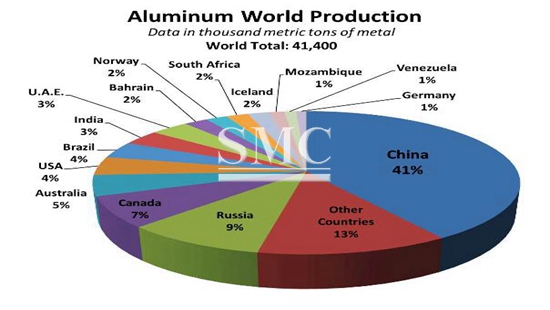 China is the world's biggest aluminum producer and consumer. China's monthly average aluminum production is almost equivalent to the US's annual production.
