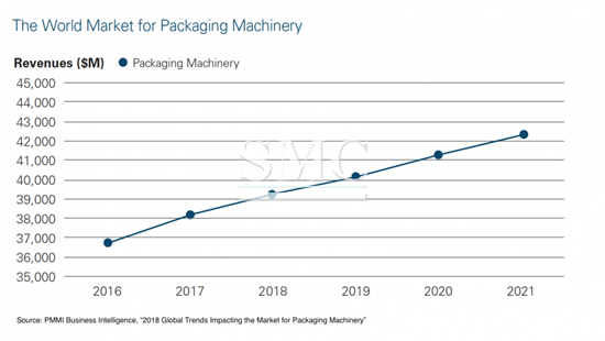 China is expected to grow the fastest, at a CAGR of 5.6% from 2016 to 2021. The global CAGR for packaging machinery is forecast to be 2.8% in the same period.
