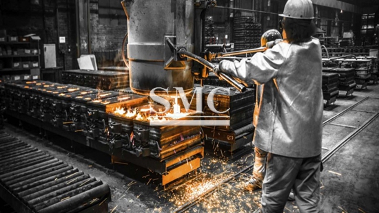 The next step is forming. The steel goes through “hot rolling”, as it is heated and passed through large rolls. At the end of this stage, blooms and billets are formed into bar and wire, while slabs are formed into plate, strip, and sheet.