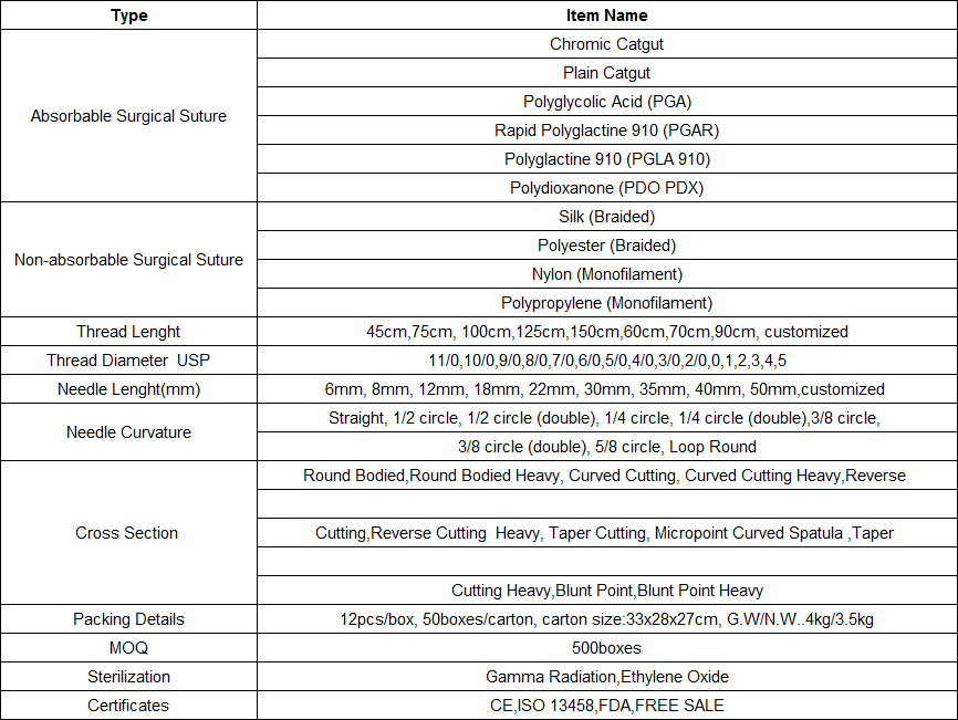 If you want to know more about Medical Products or Disposable Medical Sterile Surgical Sutures With Needle price please feel free to contact us, we will reply you within 24 hours
