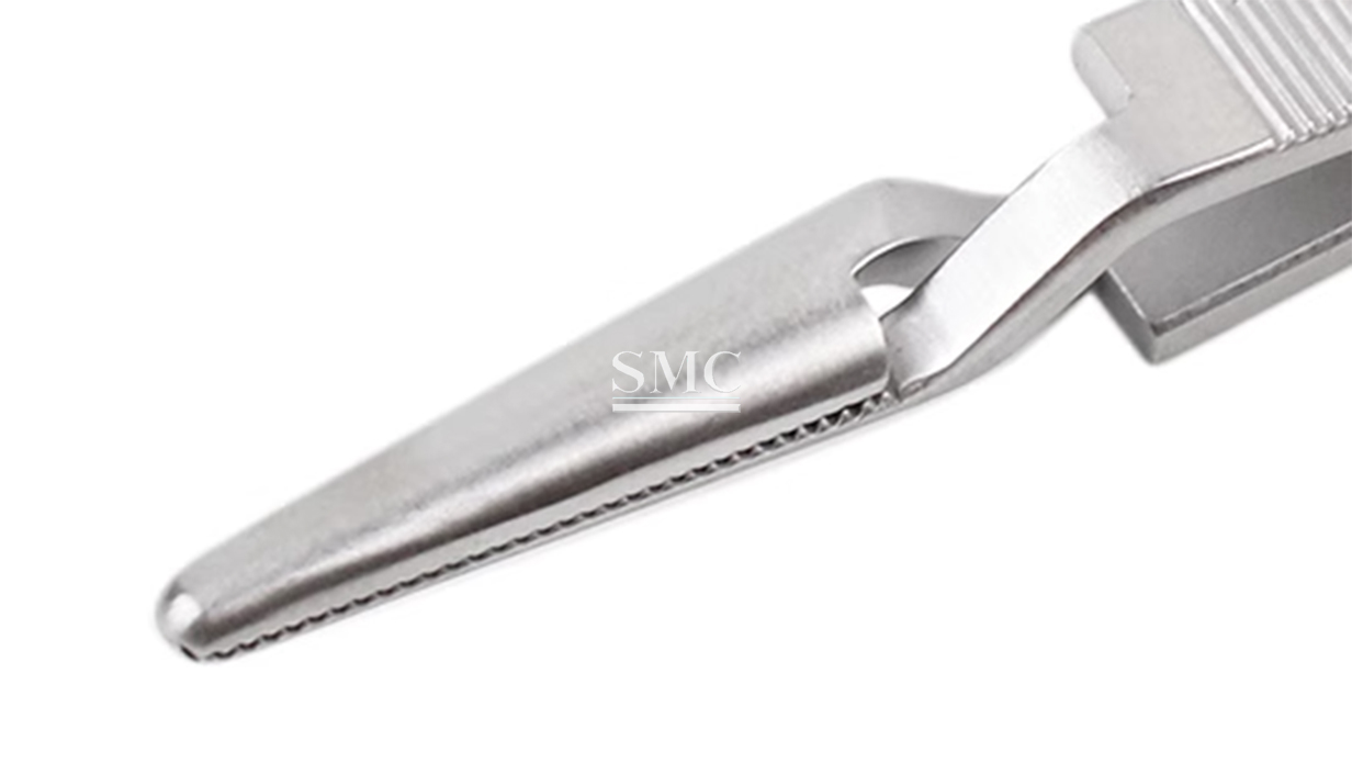 Micro vascular clamps are U- or V-shaped, with locking clips or consisting of a pair of blades superimposed at the end, and are made of metals such as titanium alloy and stainless steel. During surgery, doctors can use micro vascular clamps to clamp bleeding points and stop bleeding by clamping blood vessels or tissues and blocking blood flow. The sharp tips of the clamping jaws allow for easy clamping of blood vessels