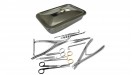 A pet surgical instrument set is a collection of specialized tools and equipment specifically tailored for performing a diverse array of surgical procedures on animals, ensuring that the procedures are conducted smoothly and effectively. The pet surgical instrument set typically includes an assortment of meticulously crafted tools, such as scalpels of varying sizes for making precise incisions, surgical scissors designed to cut through tissues and sutures with ease, and an array of hemostatic forceps or clamps that effectively control bleeding by securely clamping blood vessels. Additionally, needle holders are included to facilitate the suturing process, enabling the veterinarian to handle and manipulate surgical needles with dexterity and control.