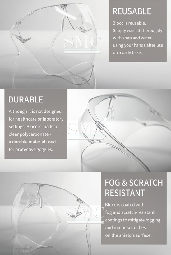 Blocc face shield is a stylish, comfortable and reusable face shield designed for protection and changing the unconscious touching face behavior which is a avenue can take advantage of the void, especially in epidemic. One of the Center for Disease Control’s main disease prevention tips is to avoid touching face which average person touches their face 23 times per hour unconsciously. Blocc covers all the major avenues for infection on your face, meanwhile it’s comfortable to wear and it’s very stylish, you can wear in daily life even when running or riding a bike. It’s becoming the new trend now and in the future of everybody focusing on health also in need of comfort and good-looking.