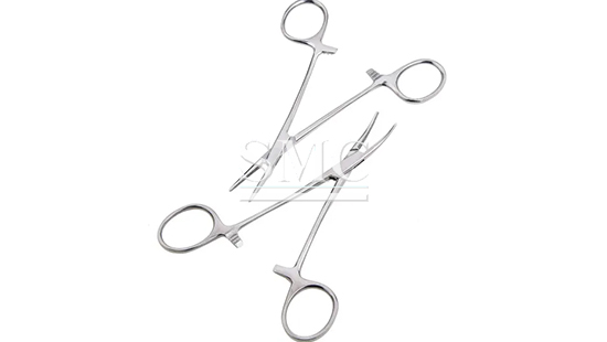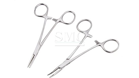 Hemostatic forceps or Hemostats (when used to clamp control blood flow) are a surgical instrument used to prevent the flow of blood from an open blood vessel by compressing the vessel. Hemostatic forceps are usually curved or straight and have serrations along the jaw to grasp onto small blood vessels, large blood vessels, or to grasp medium to heavy tissue during a surgical procedure.