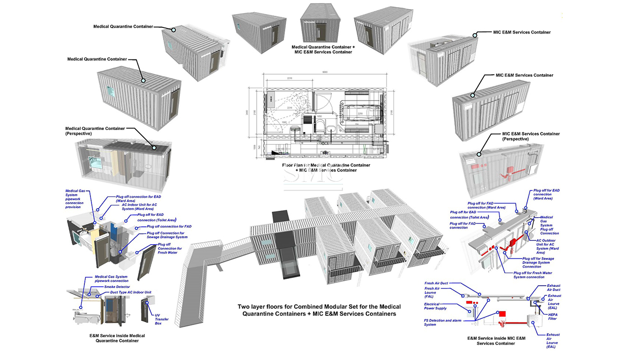 Medical container units are modular with the ISO container frame and thermal resistant material. This energy efficient product is commonly used in camp hospital, isolation ward and Storage of medical products.