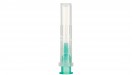 Blunt tip micro cannula is a small tube with an unsharp rounded end, specifically designed for atraumatic intradermal injections of fluids, for example injectable fillers. It has ports on the side allowing the product to be dispensed more evenly.