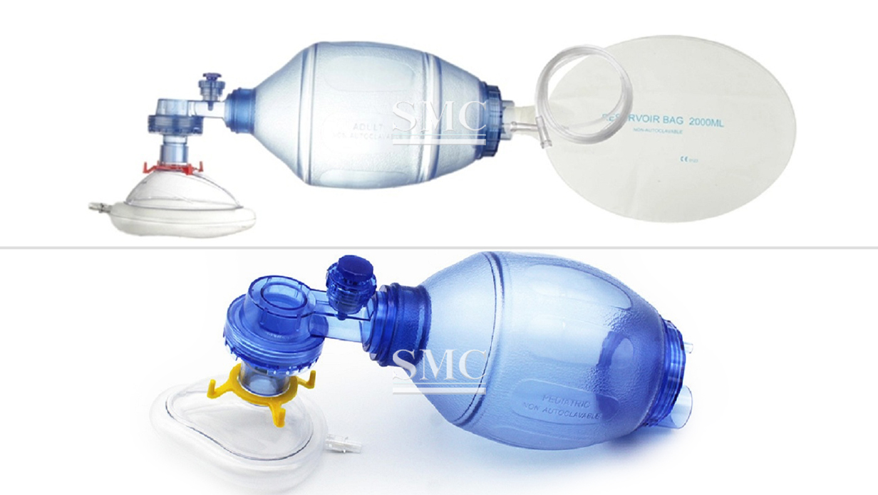 Low-resistance valves prevent re-breathing and allow exhaled gas to escape;