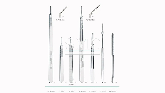 Scalpel handle is a tool made of stainless steel or other materials that can be used to install the surgical blade. The commonly used scalpel handle are 3#, 4#, 7#, 3L#, 4L#, 9# and so on.